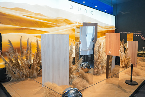 FUREN福人围绕材质、色彩与肌理,构建了六大沉浸式秘境展区——繁花、沙丘、梵野、森屿、浮光锦、清岩,突破板材作为功能材料的传统定位,赋予其空间美学的灵魂载体角色。