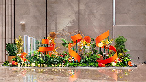 丽芳园林与白云大厦建立多年合作关系,通过一站式绿化服务构筑了深厚的信任基石。服务内容涵盖前台精品鲜花、室内植物租摆及外围绿化养护。驻场团队在做好日常管养的同时,结合节日主题开展定制化室内造景,持续提升空间美学体验。