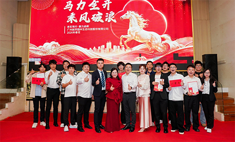 春茗晚宴期间,在热烈的氛围中,何董率领公司中高层管理团队登台祝酒。他满怀激情地举起酒杯:“让我们共同举杯,致敬过去一年的坚守与拼搏,祝福崭新征程上策马扬鞭、再谱华章!”